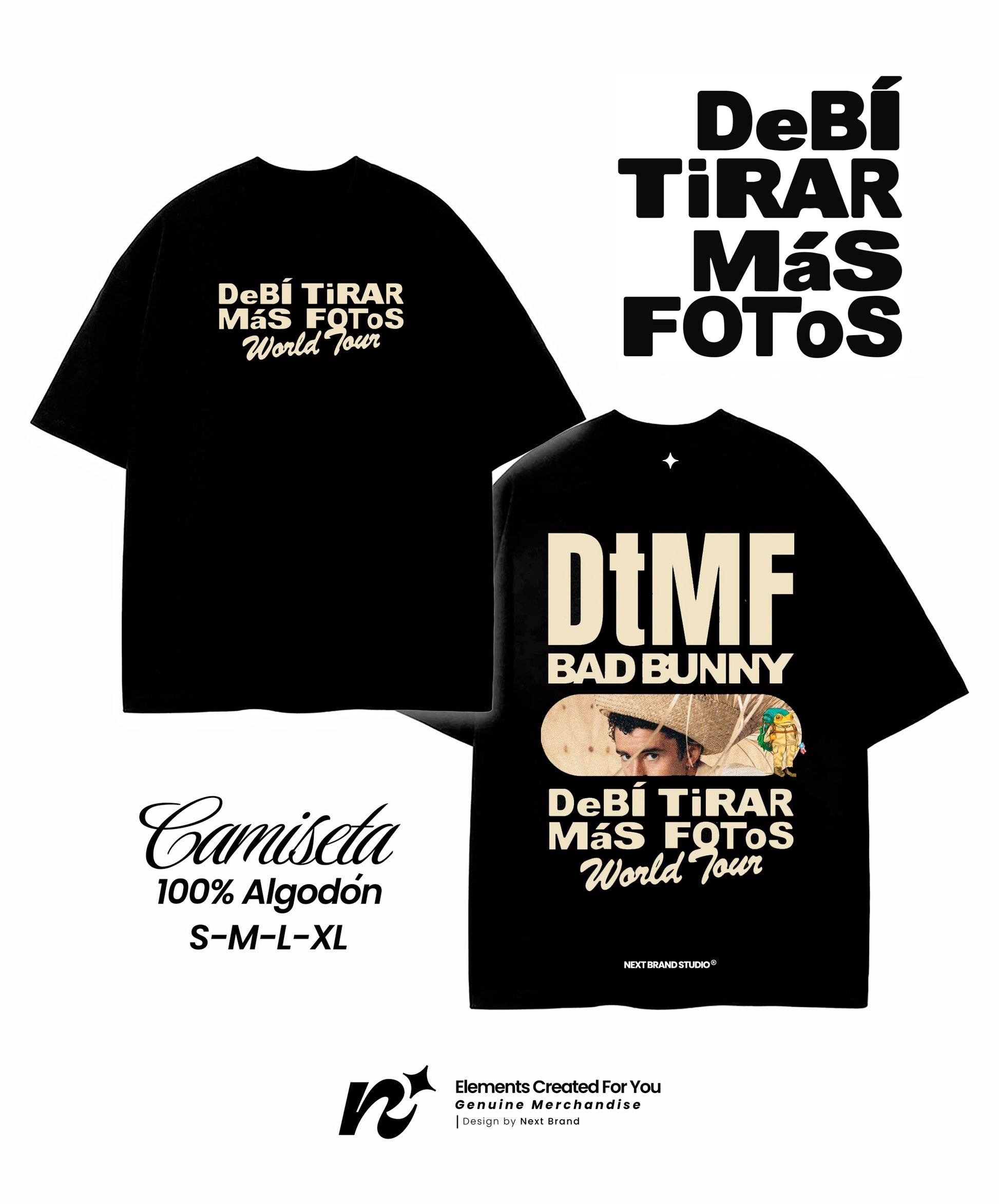 Esta camiseta exclusiva de Bad Bunny es imprescindible para todo fanático del artista más influyente del trap latino y reggaetón. Diseñada para quienes vibran con la música que conquistó el mundo, desde Un Verano Sin Ti hasta YHLQMDLG, El Último Tour Del Mundo y sus éxitos más recientes.