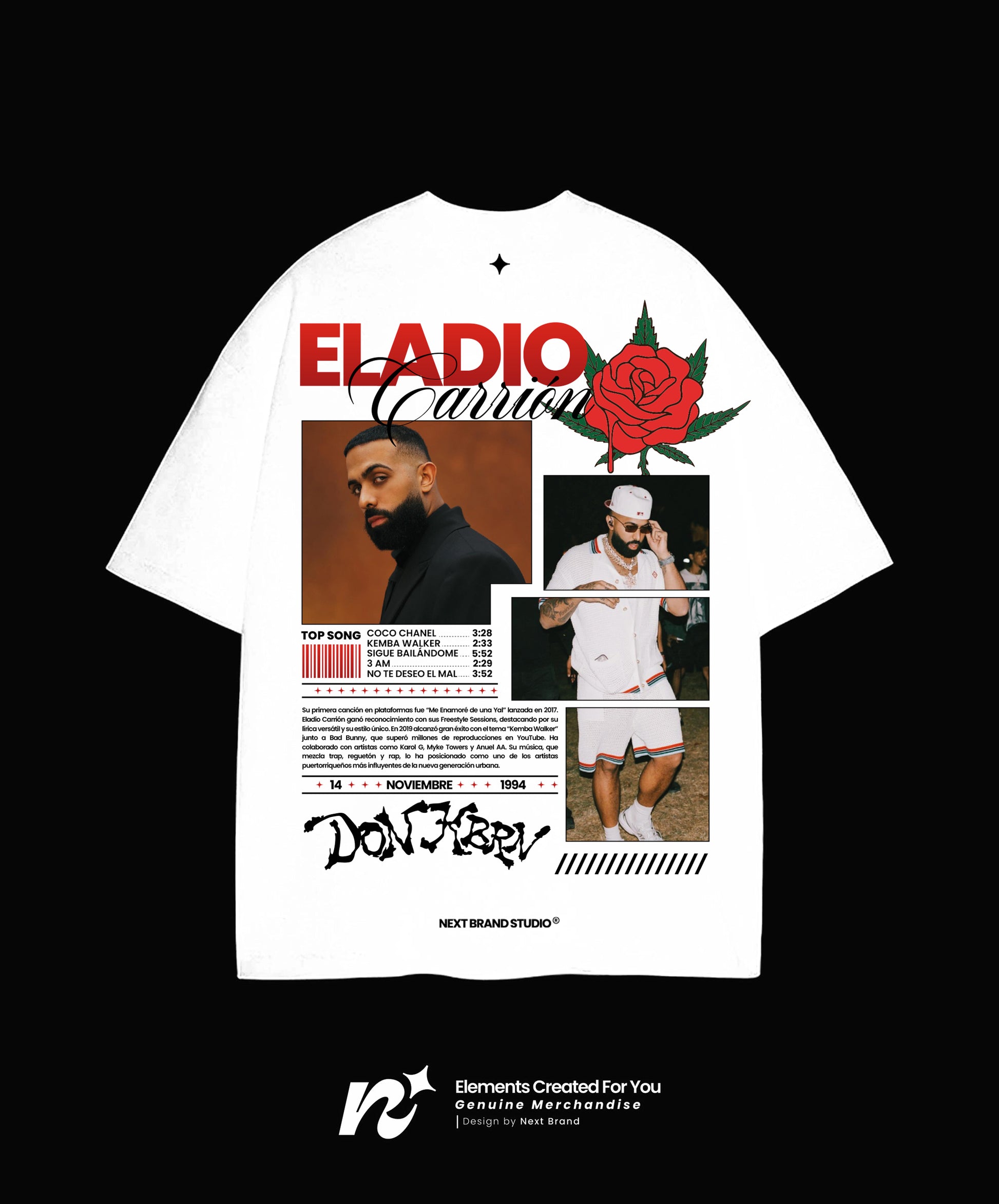 Representa la realeza del trap con esta camiseta exclusiva del mismísimo Sauce Boyz, Eladio Carrión. Una pieza que no solo vistes, sino que llevas como símbolo de tu buen gusto musical.