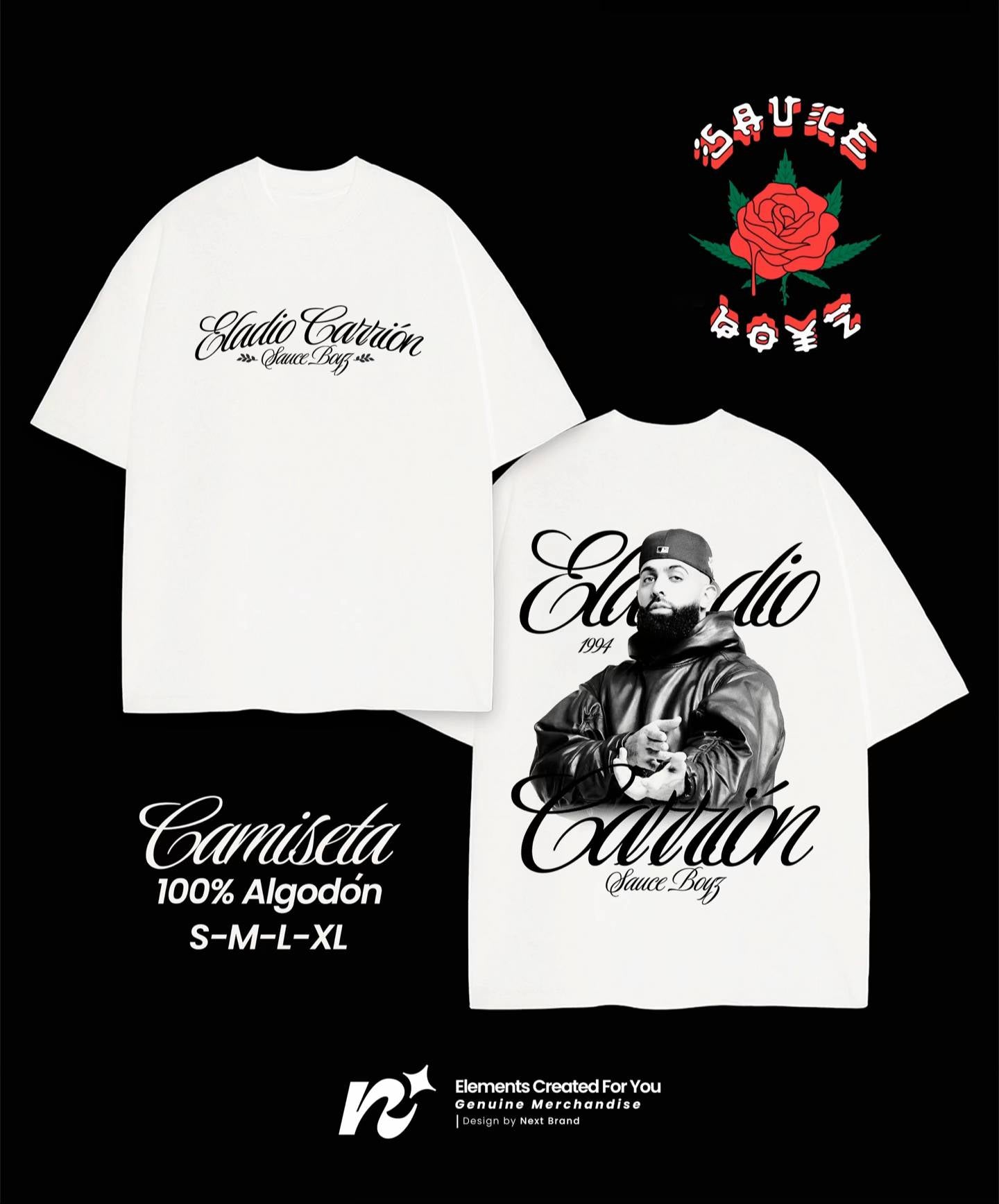 Representa la realeza del trap con esta camiseta exclusiva del mismísimo Sauce God, Eladio Carrión. Una pieza que no solo vistes, sino que llevas como símbolo de tu buen gusto musical.