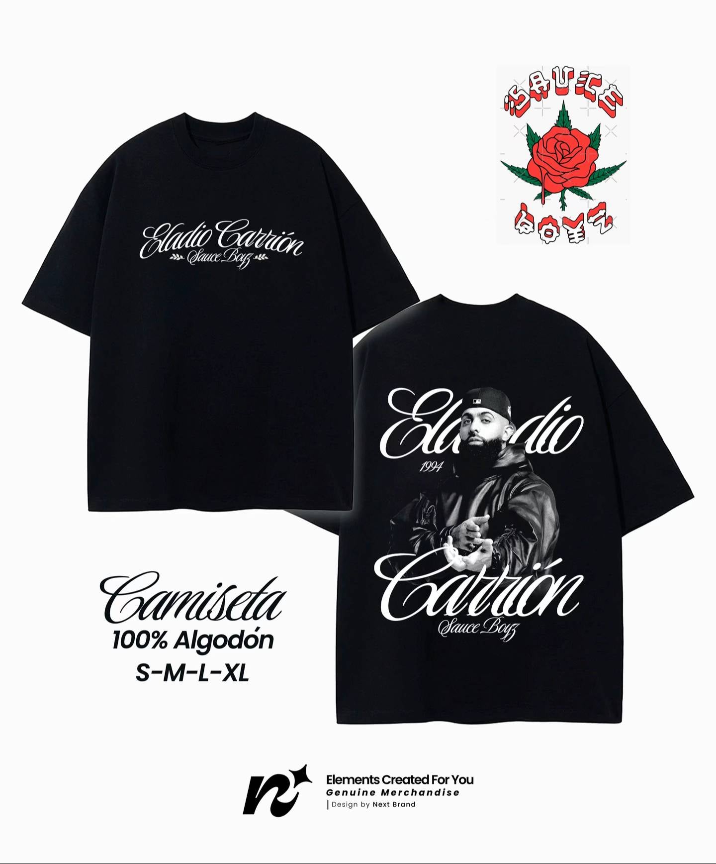 Representa la realeza del trap con esta camiseta exclusiva del mismísimo Sauce God, Eladio Carrión. Una pieza que no solo vistes, sino que llevas como símbolo de tu buen gusto musical.